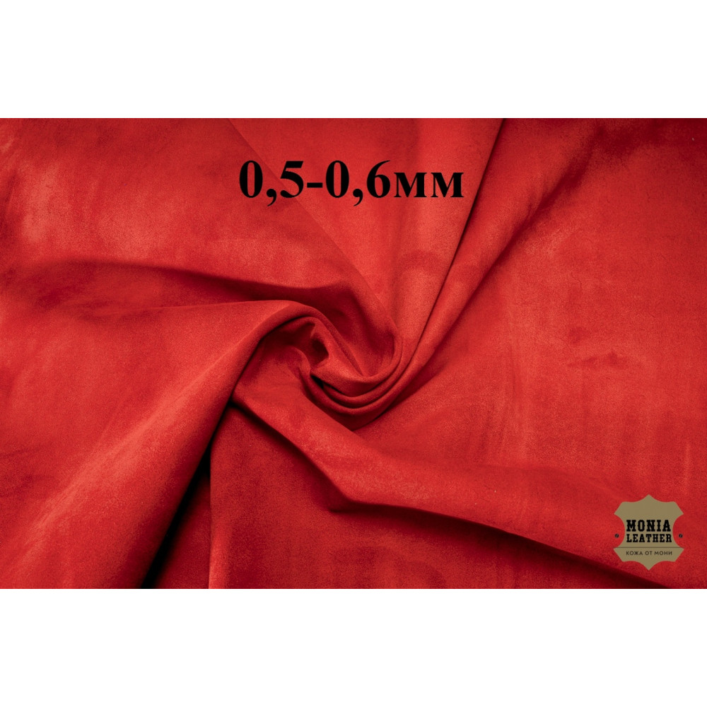 №230 Замша Bonaudo Cachemire Rosso Scuro 0,6-0,7 мм Телячья замша Цвет насыщенный красный Кожа великолепная, с потрясающей органолептикой, нежнейшая на ощупь.Для одежды, галантереи, подкладки. В общем.. Читать полностью