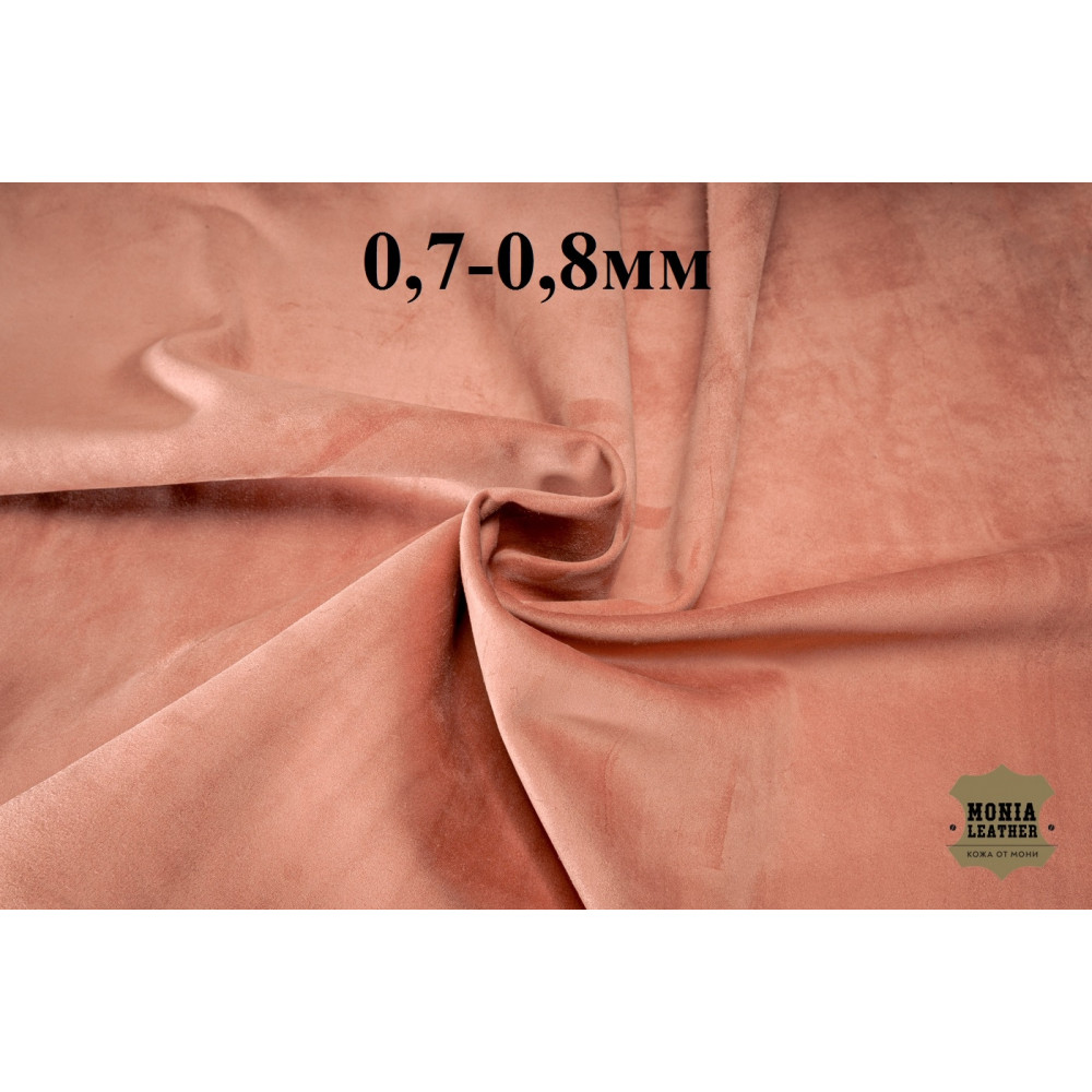 №247 Замша Bonaudo Cachemire Brandy 0,7-0,8 ммТелячья замшаЦвет нежный, я бы скорее назвал салмон, но производителю виднее)Кожа великолепная, с потрясающей органолептикой, нежнейшая на ощупь.Для одежд.. Читать полностью