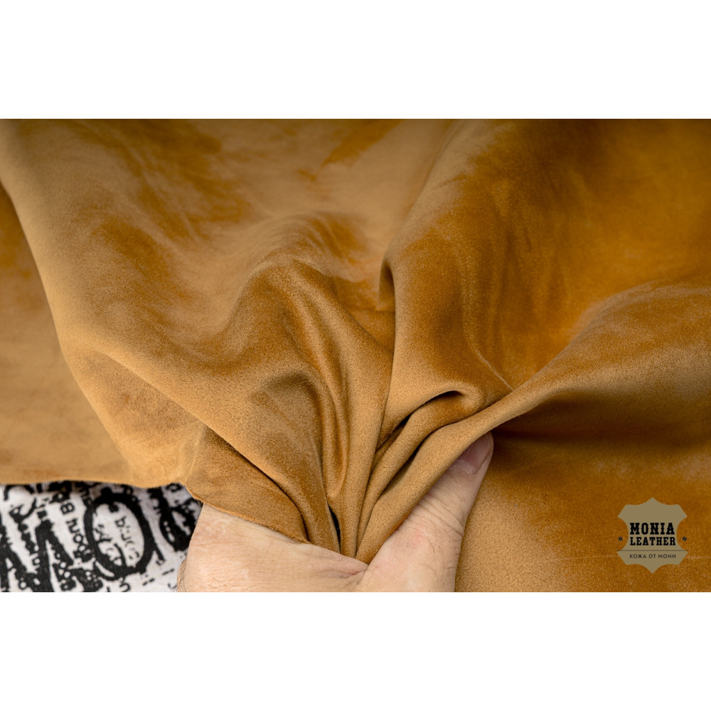 №314 Замша Bonaudo Cachemire Levant 0,7 мм Телячья замша Цвет немного темнее песочного Кожа великолепная, с потрясающей органолептикой, нежнейшая на ощупь.Для одежды, галантереи, подкладки. В общем с.. Читать полностью