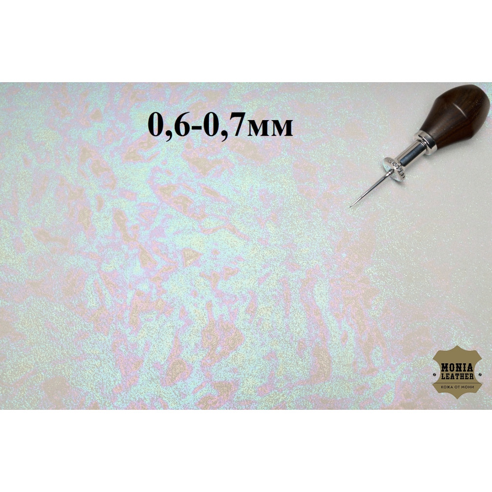 Интересный артикул. Лицевая сторона настолько мелкая замша, что ощущается скорее просто как кожа. На лицо нанесен голографический узор.