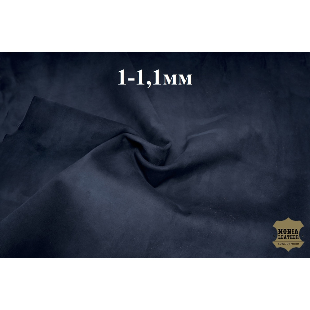 №444 Замша Stefania Velukid Matrix Sugar Marine 1-1,1мм Козья замша. Изготовлена для Hermes, коллекция 23-24 года. Шкурки мелкие 37-42 дм. Хорошая плотность. Идет как на верх изделия, так и на подклад.. Читать полностью
