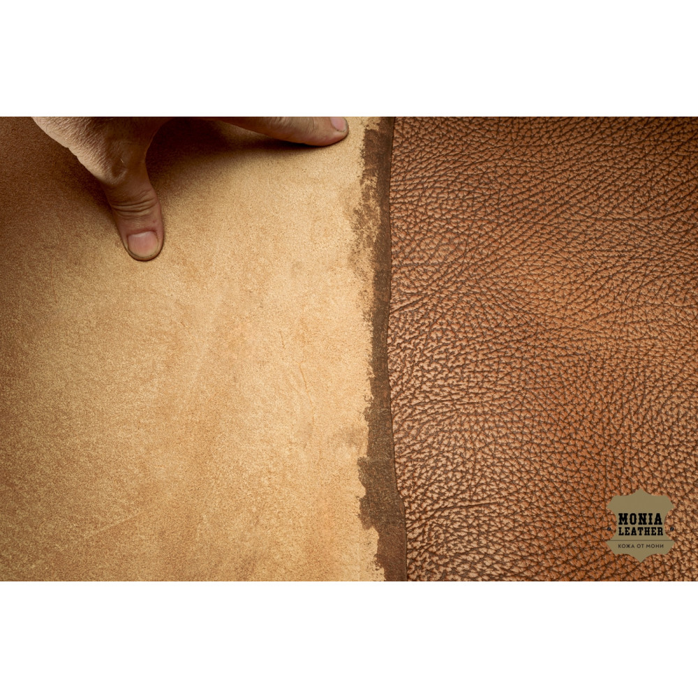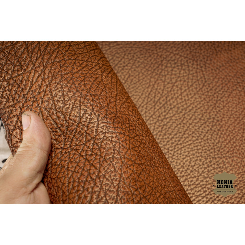 Кожа ручного окраса тампонато, с тиснением под бизона.