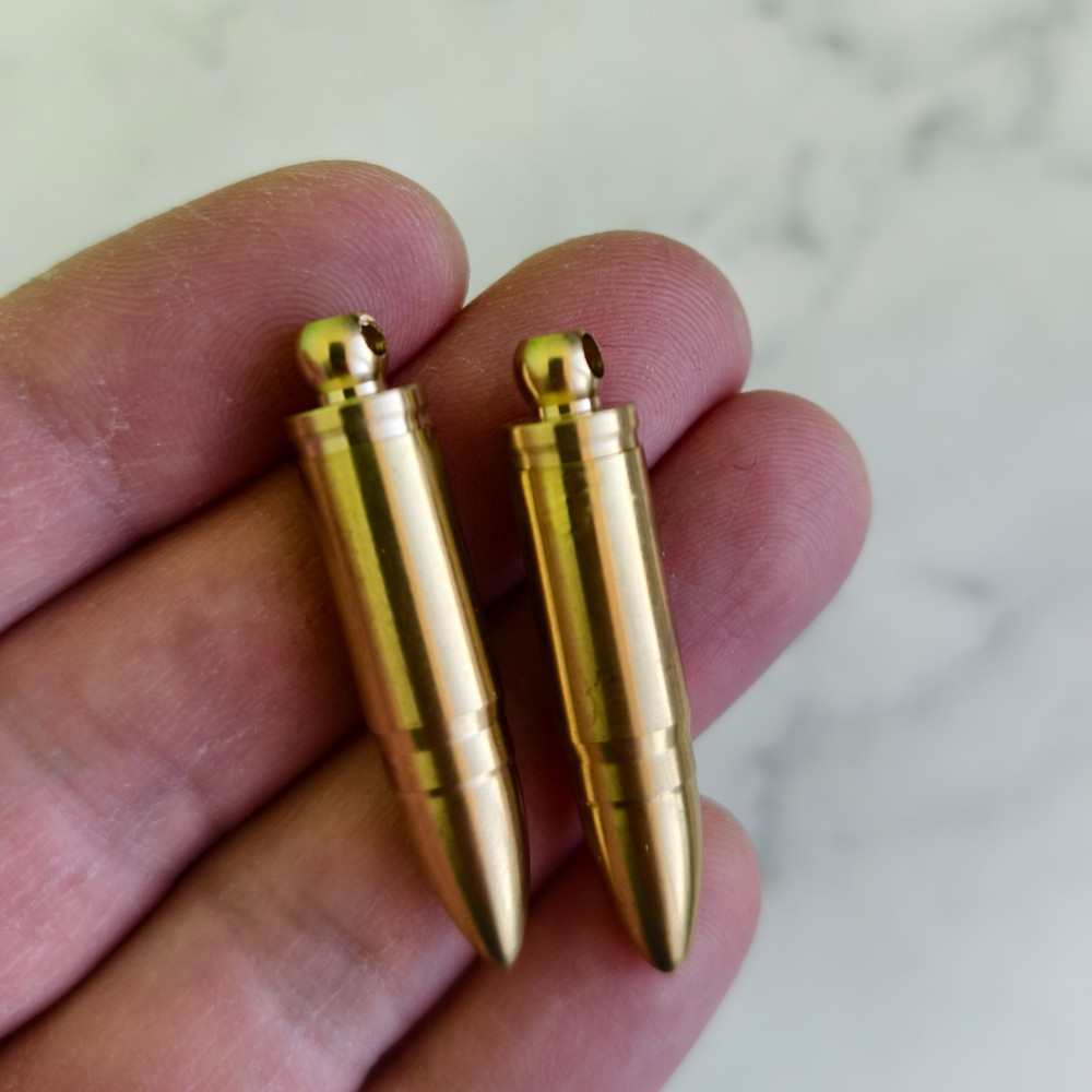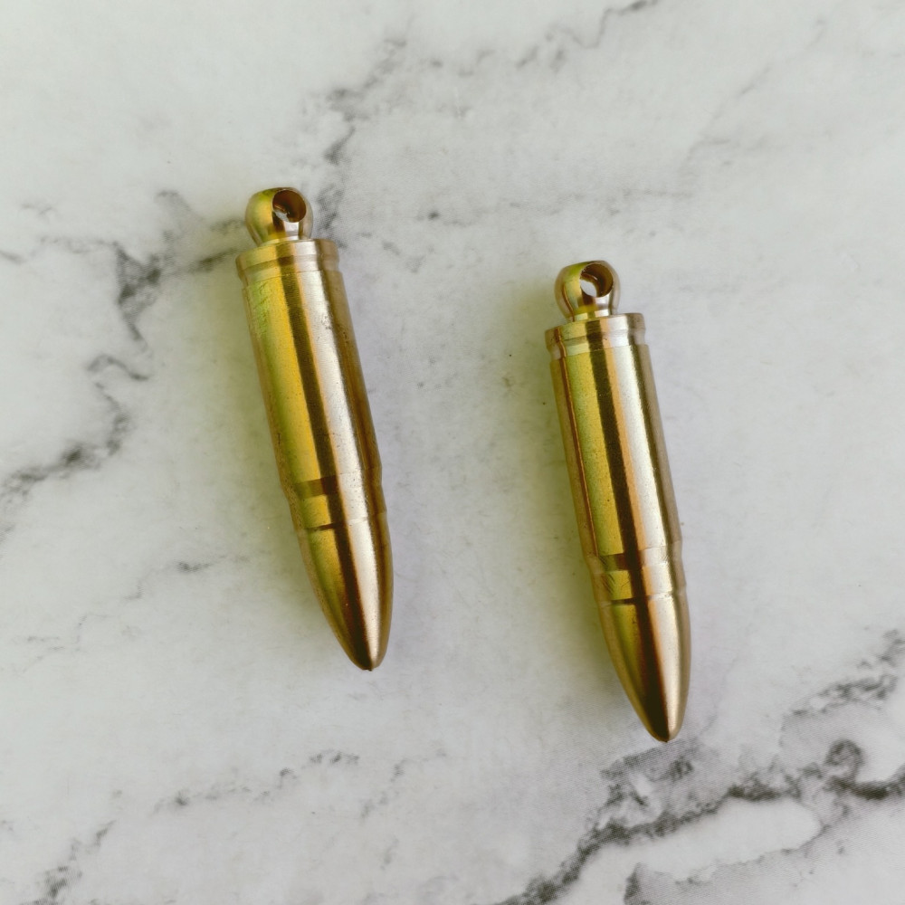 Подвеска "Пуля" Может использоваться как брелок, подвеска или при создании изделий как декоративный элемент. крышка откручивается, и внутри есть лезвие (см. фото) Размеры: длина - 43мм диаметр - 9мм.. Читать полностью
