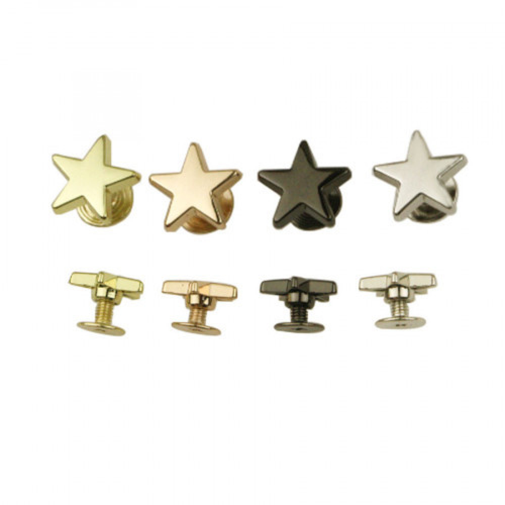 Металлические украшения для кoжи - декоративный винт в форме звездочки.Крепление винтовое. Цвет металла: светлое-золото, золото, серебро, черныйМатериал - цинковый сплавРазмер на фото.Цена указана за 1 штуку.