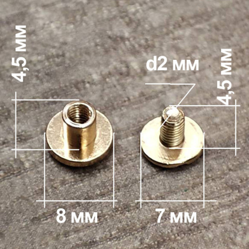 Размеры представлены на дополнительном фото. Диаметр шляпки - 8 мм, высота ножки - 4,5 мм, диаметр ножки - 4 мм.Диаметр шляпки - 6 мм, высота ножки - 4,5 мм, диаметр ножки - 4 мм.Цвет: золото, серебро, темная латунь, черно-серый.Производитель: КНР