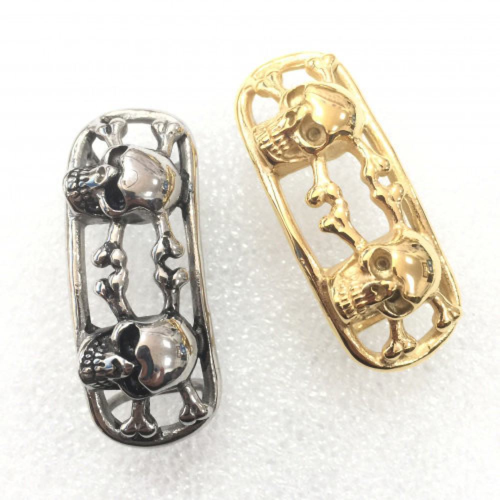 Качеcтвенная фурнитура из нержавеющей стали для стильных браслетов из кожаных шнуров. Бусины для браслета с двумя черепами имеют овальное отверстие с сечением 12х6 мм, внешний размер - 47х18х18 ммЦвет.. Читать полностью