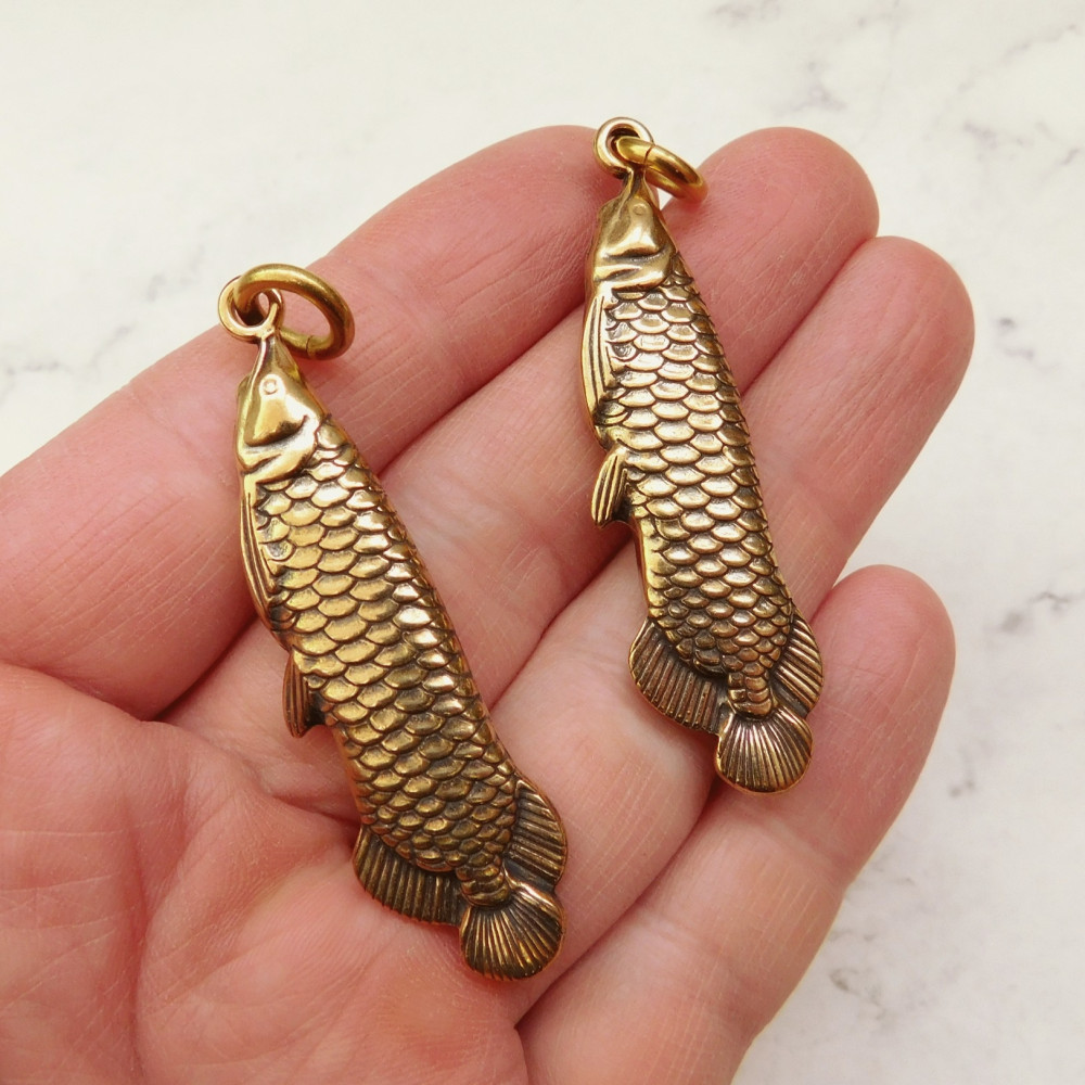 Латунный брелок "Рыба" выполнен методом литья, может использоваться как брелок на ключи или в качестве подвески на сумку. В комплекте - брелок + маленькое латунное колечко (10х2,0мм)