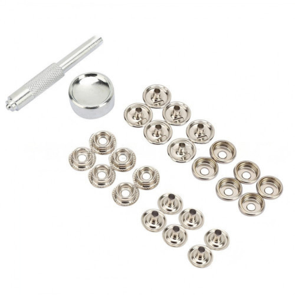 Такие кнопки устанавливаются при помощи специальных инструментов на одежду, сумки, кошельки, браслеты и т.д.В наборе: 6 кнопок (состоят из четырех частей), инструмент для установки (установщик, плашка)Материал инструмента: углеродистая сталь.Материал кнопок: металлический сплав.Упаковка: пластиковый пакет.Цена за 1 набор.