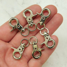 Мини карабин из сплава металла под цвет "никель". Может быть использован как элемент брелка или в других целях.