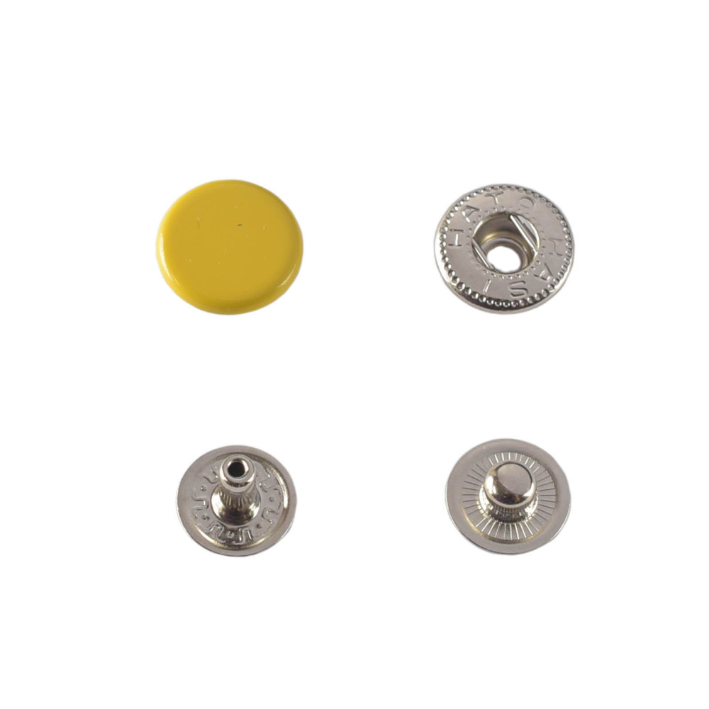 Жёлтая кнопка-застежка "Альфа" используется при изготовлении разнообразных изделий из кожи: сумок, клатчей, кошельков и пр. Изготовлена из стали с покрытием и имеет S-образную зажимную пружину. Произв.. Читать полностью