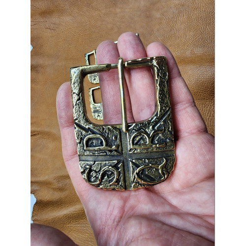 Латунная патинированная пряжка от Таганрогского литейщика Old Torin. Эта артель крепких гномов знает толк в литье. Внутренний размер 41 мм..