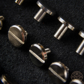 Винты ременные с плоской шляпкой Размер: 10*10*5,5мм Цвета: антик, никель, золото, темный никель фасовка по 10шт.. Читать полностью