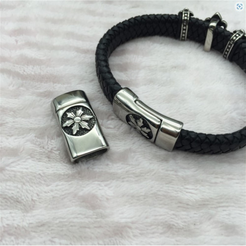 Качeственная фурнитура из нержавеющей стали для стильных браслетов из кожаных шнуров. Застежки для браслета с рельефным изображением снежинки имеют овальное отверстие с сечением 12,5х6,5 мм, внешний.. Читать полностью