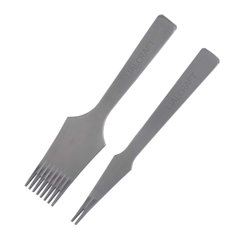 Комплект строчных пробойников LL French французского типа для кожи с полированными зубьями. Имеют удлиненные зубья.Идеально ровные и полированные зубья и утолщенная форма рукоятки, позволяют прикладывать меньше усилий для пробивания отверстий даже в толстой в коже без использования шила.