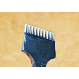 Нaбор строчныхромбовидныхпробойников для ручного пошива изделий из кожи. Строчные (шаговые) просечки один из самых востребованные кожевенных инструментов. предназначендля пробивания аккуратных и равно удаленных друг от друга отверстий под шов в коже. Размер пробойников с шагом 3 мм обычно используют для самых тонких кож (пошив часовых ремешков, мелких галантерейных деталей), самый широкий шаг - для пошива шорно-седельных изделий из толстых кож.Набор сшагом 3 мм, 4 мм, 5 мм, 6 мм (расстояние между зубьев).Количество зубьев: 1+2+5+10Также есть в наличии набор с шагом 3 мм с количеством зубьев: 1+5+10Форма зуба ромбовидная, размером 1х1,5 ммМатериал: полированная (зеркальная) нерж. сталь