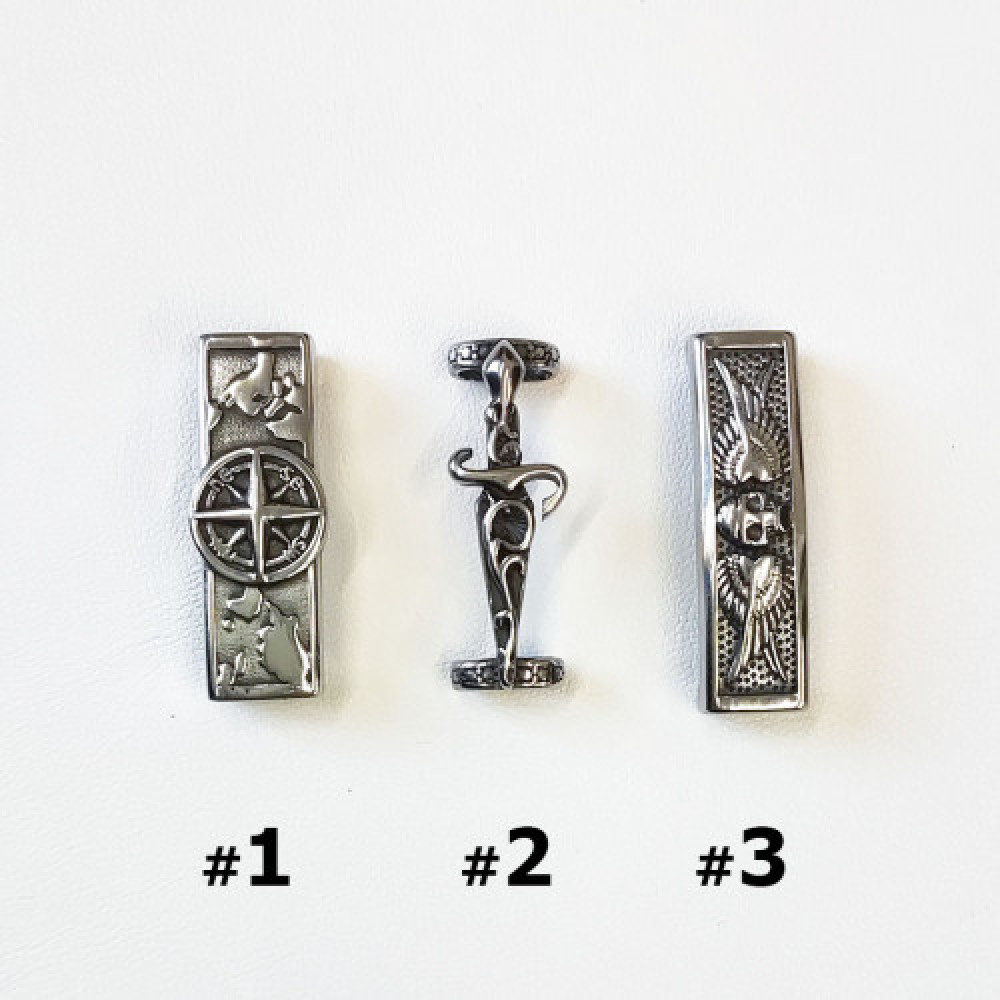 Фурнитура из нeржавеющей стали для браслетов из кожаных шнуров. Бусины из нержавеющей стали, украшенные стразами для оформления браслетов из кожаных шнуров в стиле регализ. Бусина на плоский шнур 8х4 .. Читать полностью