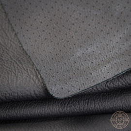Натуральная кожа со среднезернистым тиснением и гладкой обратной стороной. Эластичная и крепкая на разрыв, морозостойкая. Есть компаньон из перфорированной кожи - 40,5 руб.