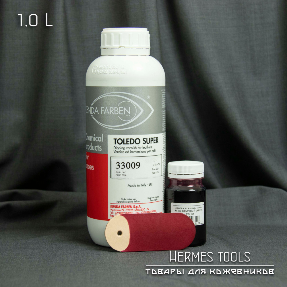 TOLEDO SUPER - высококачественная краска для кожи. • Цвет: красный (№ 33009) • Объём: 1 литр (заводская упаковка) • Производитель: Kenda Farben (Италия) Это жидкий однокомпонентный краситель для кож.. Читать полностью