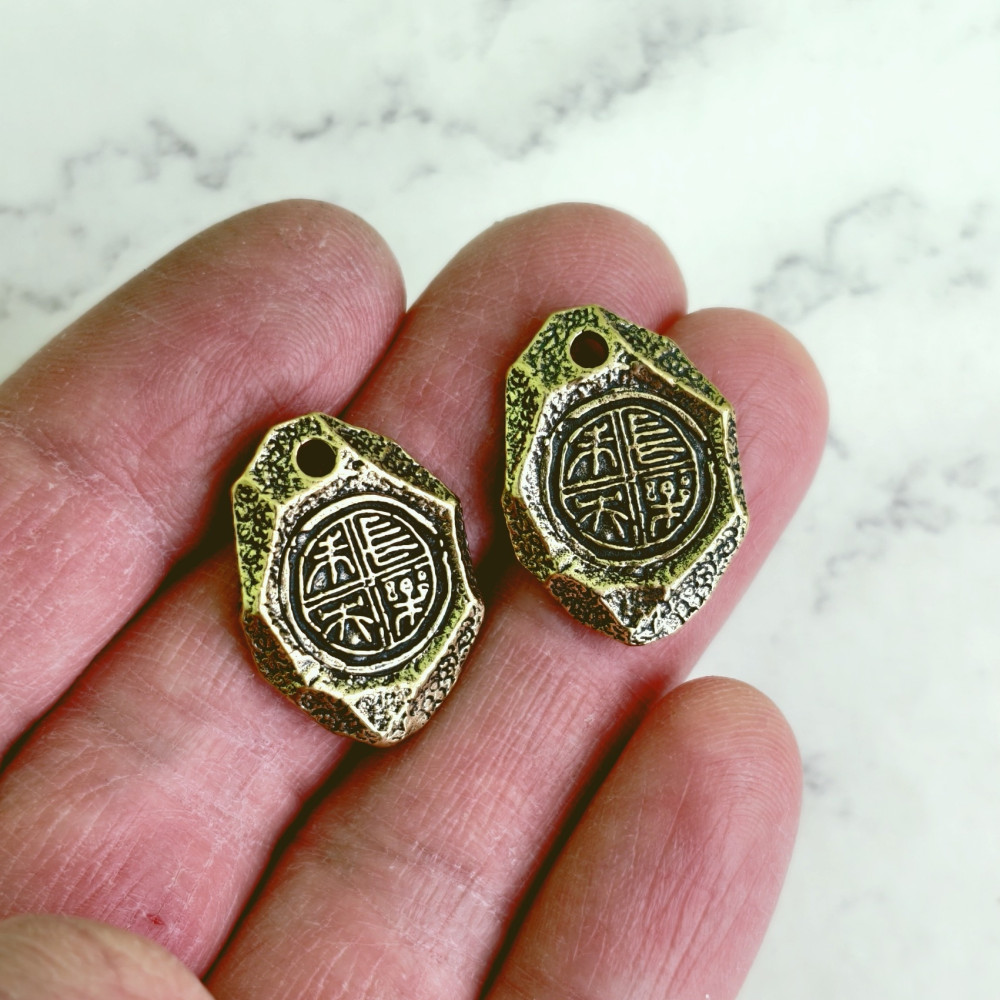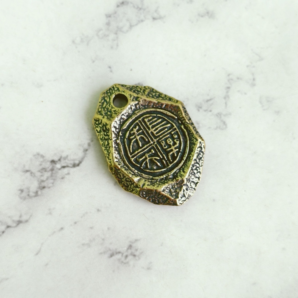 Подвеска латунная "Камень" с изображениями иероглифов. Двухматериальный необычный аксессуар, можно повесить на цепочку или носить в качестве брелка.