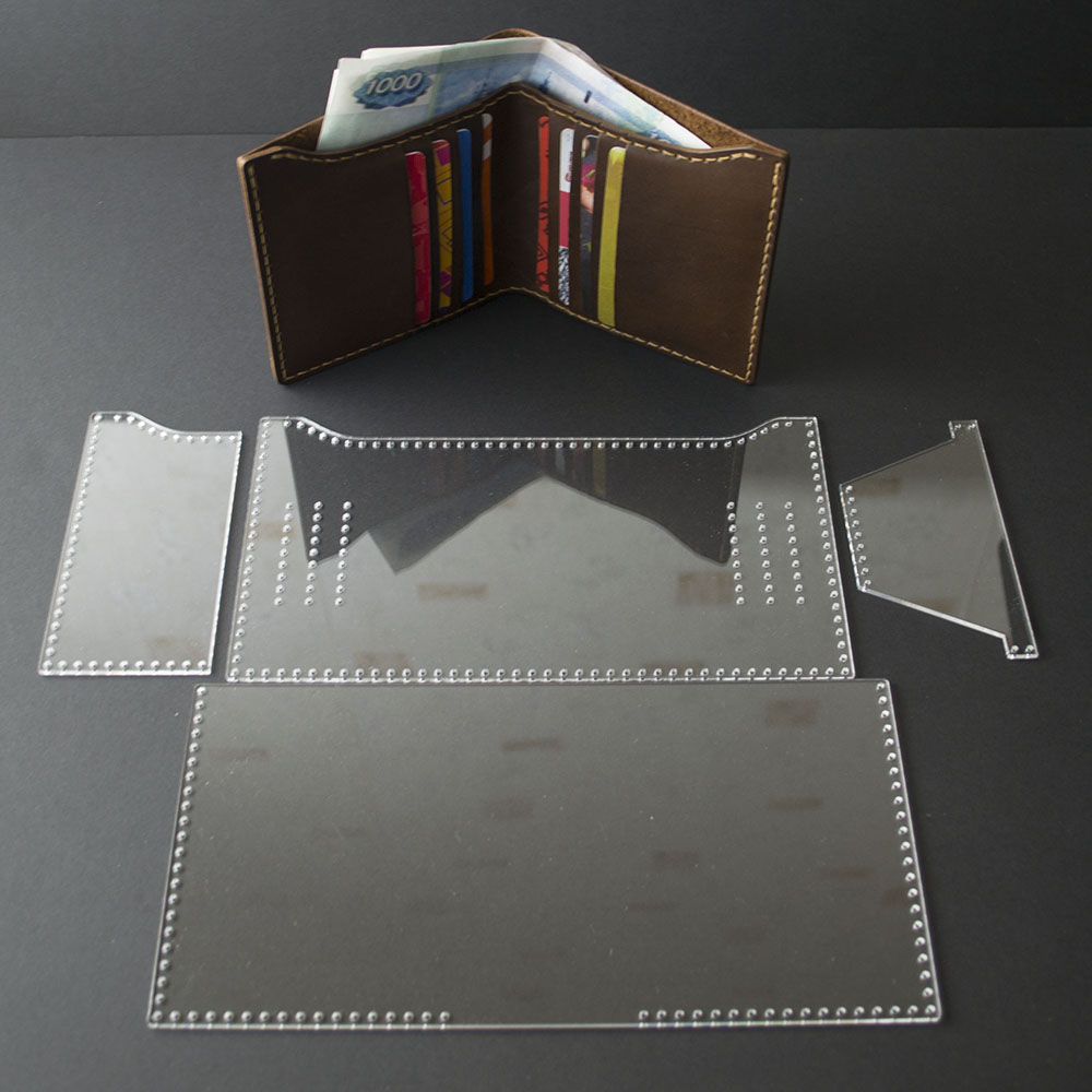 Акриловый шаблон для изготовления кошелька-бифолда с большим карманом для купюр и кармашками под карты.