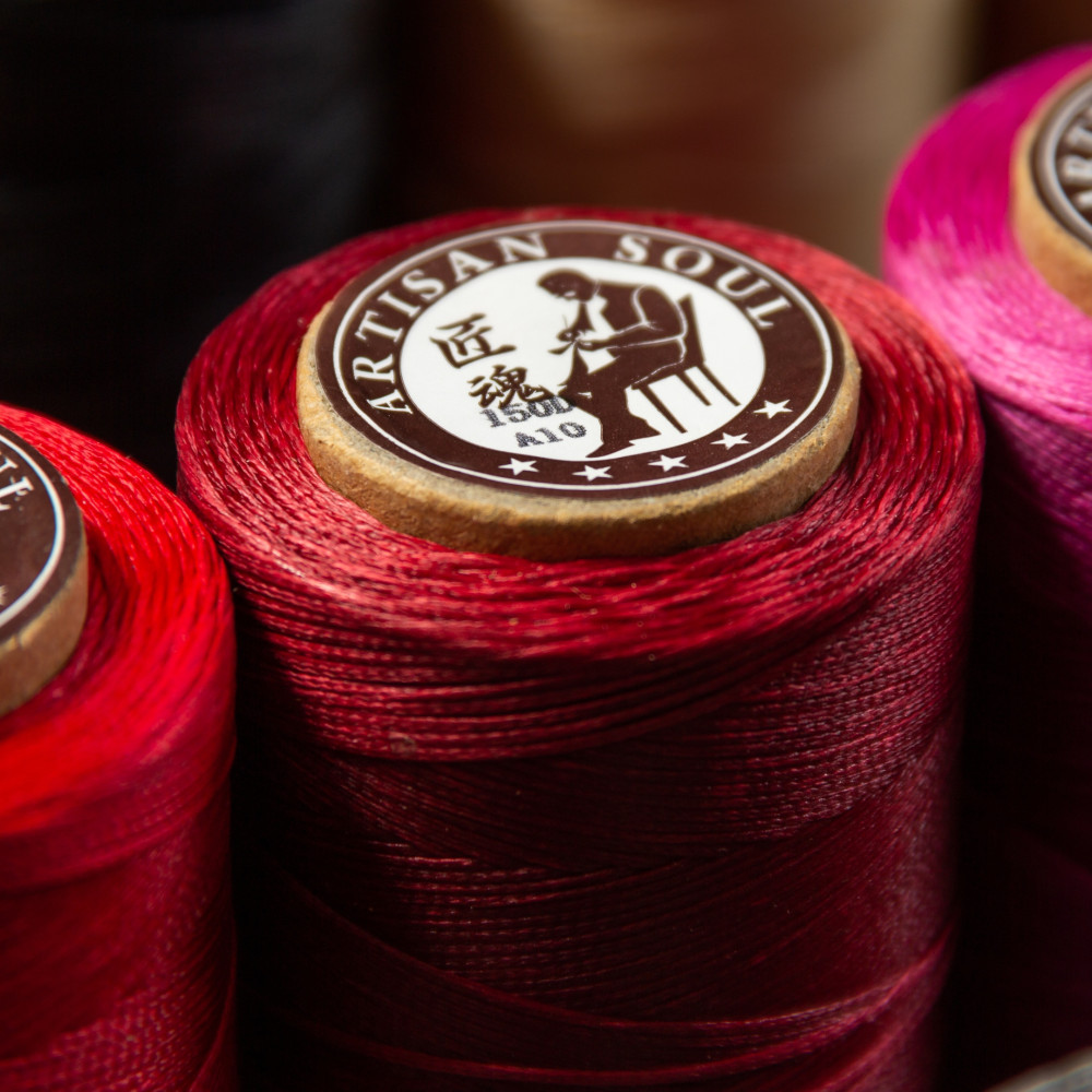 Нить плетеная, поэтому практически не растягивается. Благодаря вощению нить не лохматится, а затянутый стежок не вытягивается.