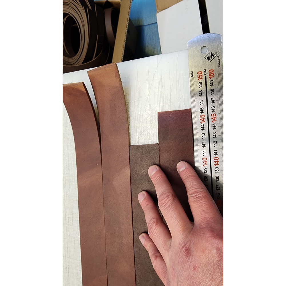 №2 Лот ременной 40мм Лот ременной 40мм из быка Гайял растительное дубление Есть мизерные недочеты, которые можно игнорировать. Кусок на тренчики к каждой РЗ в комплекте.. Читать полностью