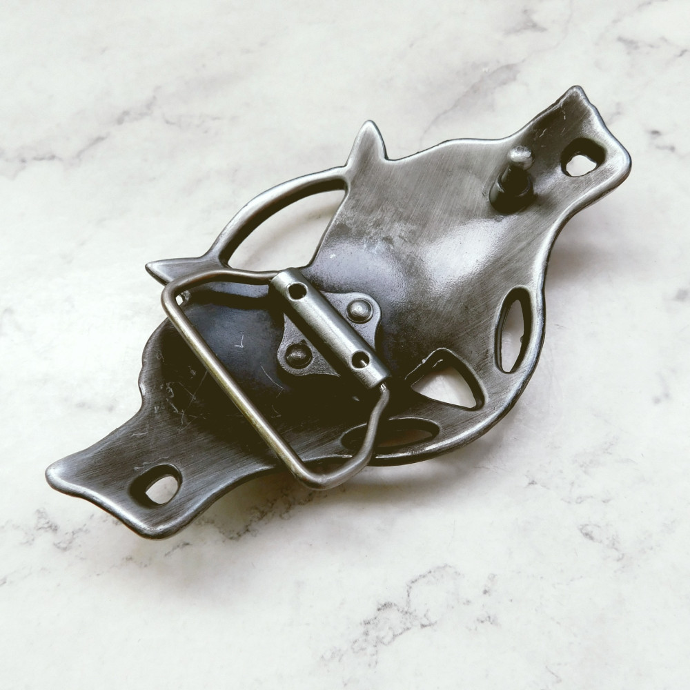 Пряжка кельской тематики с изображением волков. Необычной формы, достаточно большая. Выполнена из металла. Застегивается на кобурную кнопку-крючок. Подвижная дужка. Размеры: Внешние размеры - 63*110м.. Читать полностью