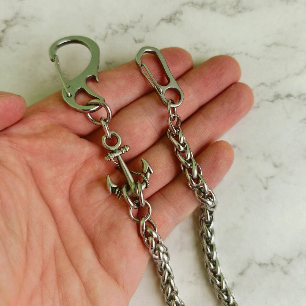 Кошельковая цепь может быть использована как декоративный элемент, так и непосредственно для ношения кошелька в заднем кармане.