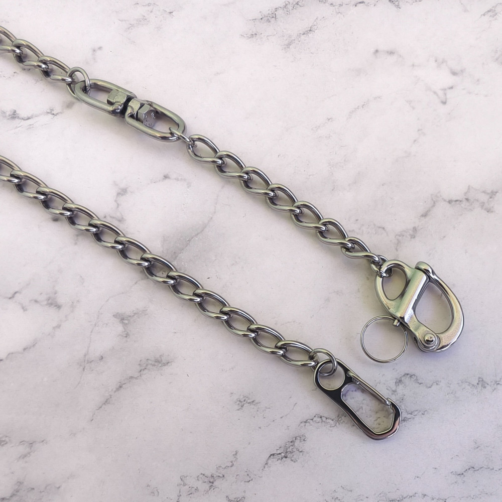 Кошельковая цепь может быть использована как декоративный элемент, так и непосредственно для ношения кошелька в заднем кармане.