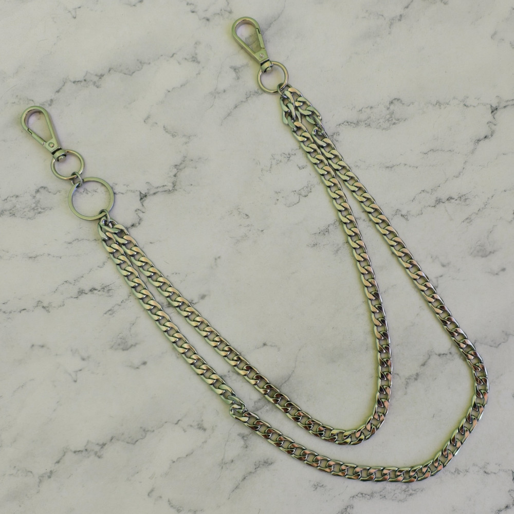 Кошельковая цепь может быть использована как декоративный элемент, так и непосредственно для ношения кошелька в заднем кармане.