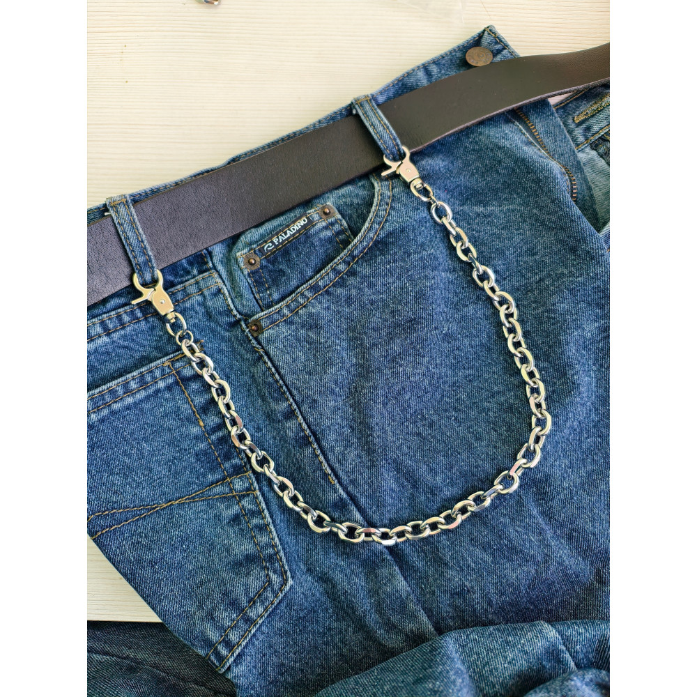 Кошельковая цепь может быть использована как декоративный элемент, так и непосредственно для ношения кошелька в заднем кармане.