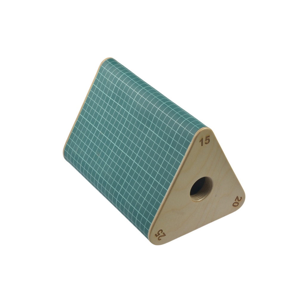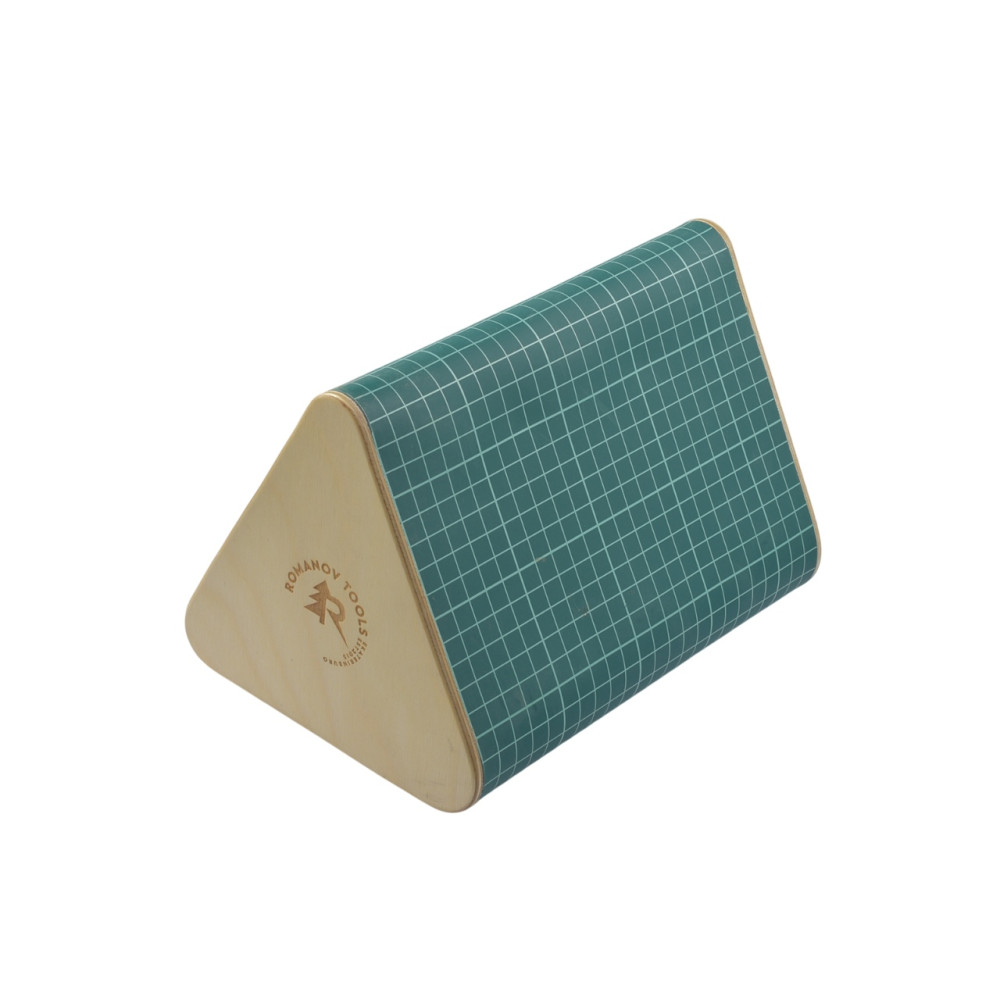 Радиусная форма-колодка "Призма" от Romanov Tools используется для склейки и аккуратной формовки различный изделий из кожи: клатчей, сумок, часовых ремешков и прочих, которые имеют место сгиба.Изготовлена из фанеры толщиной 10 мм и обклеена матом толщиной 3мм, что позволяет на ней не только формовать, но и пробивать отверстия, шов или подрезать края.Имеет форму равностороннего треугольника, но с тремя различными радиусами: 15мм, 20мм, 25мм.