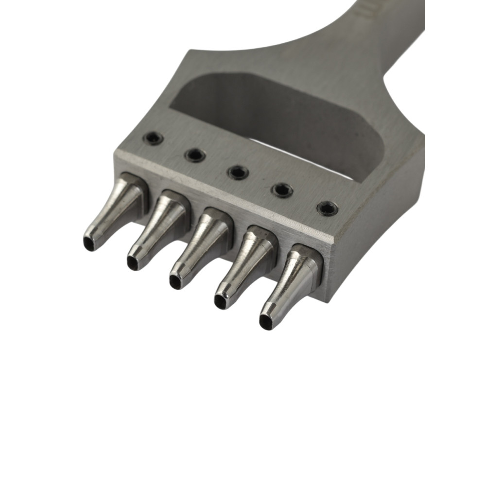 Профессиональный пробойник LC для часовых ремешков, вырубающий овальные отверстия. Имеет острый угол заточки и полированные зубы для легкого пробивания аккуратных отверстий. Зубы сменные и могут быть заменены в случае поломки или на другой размер.