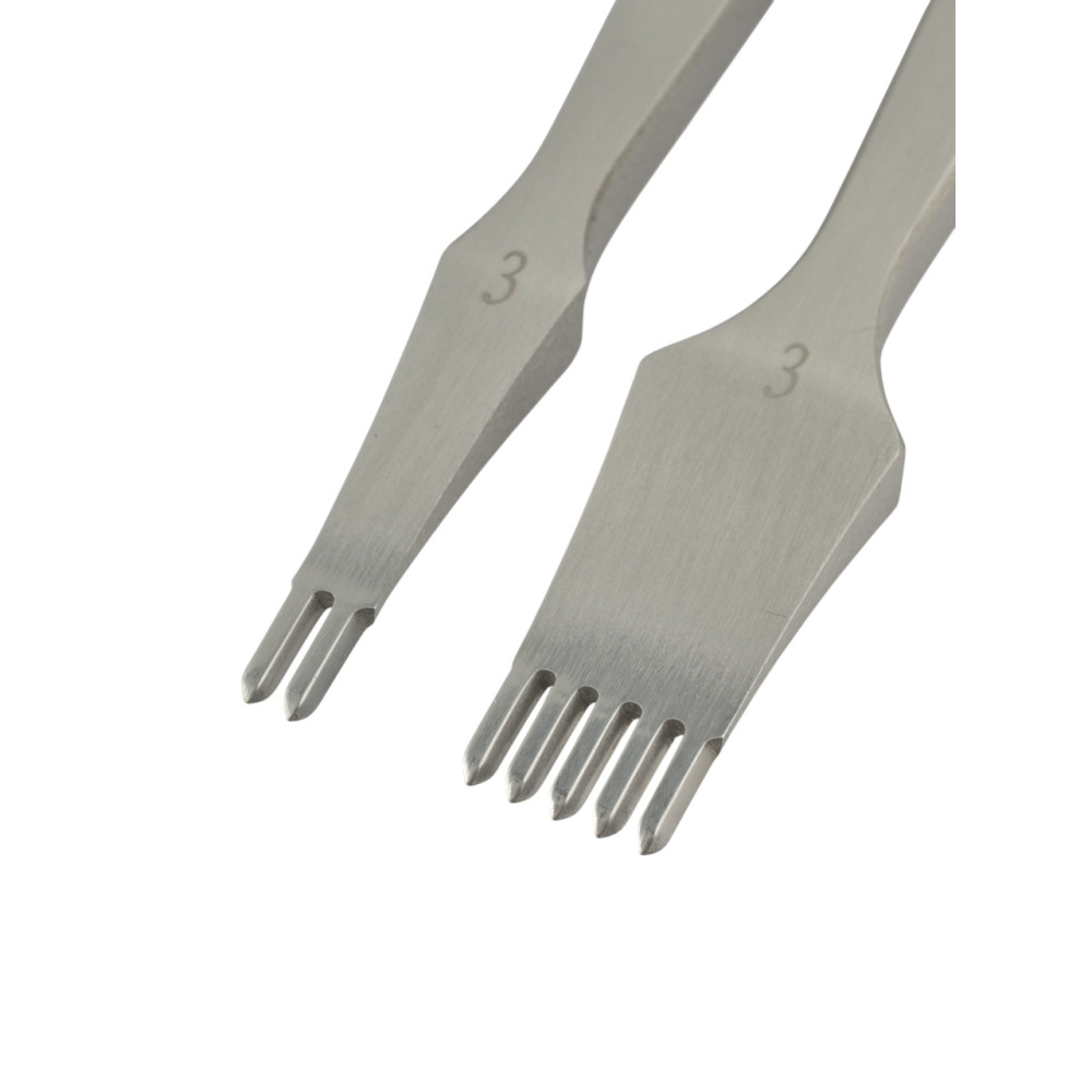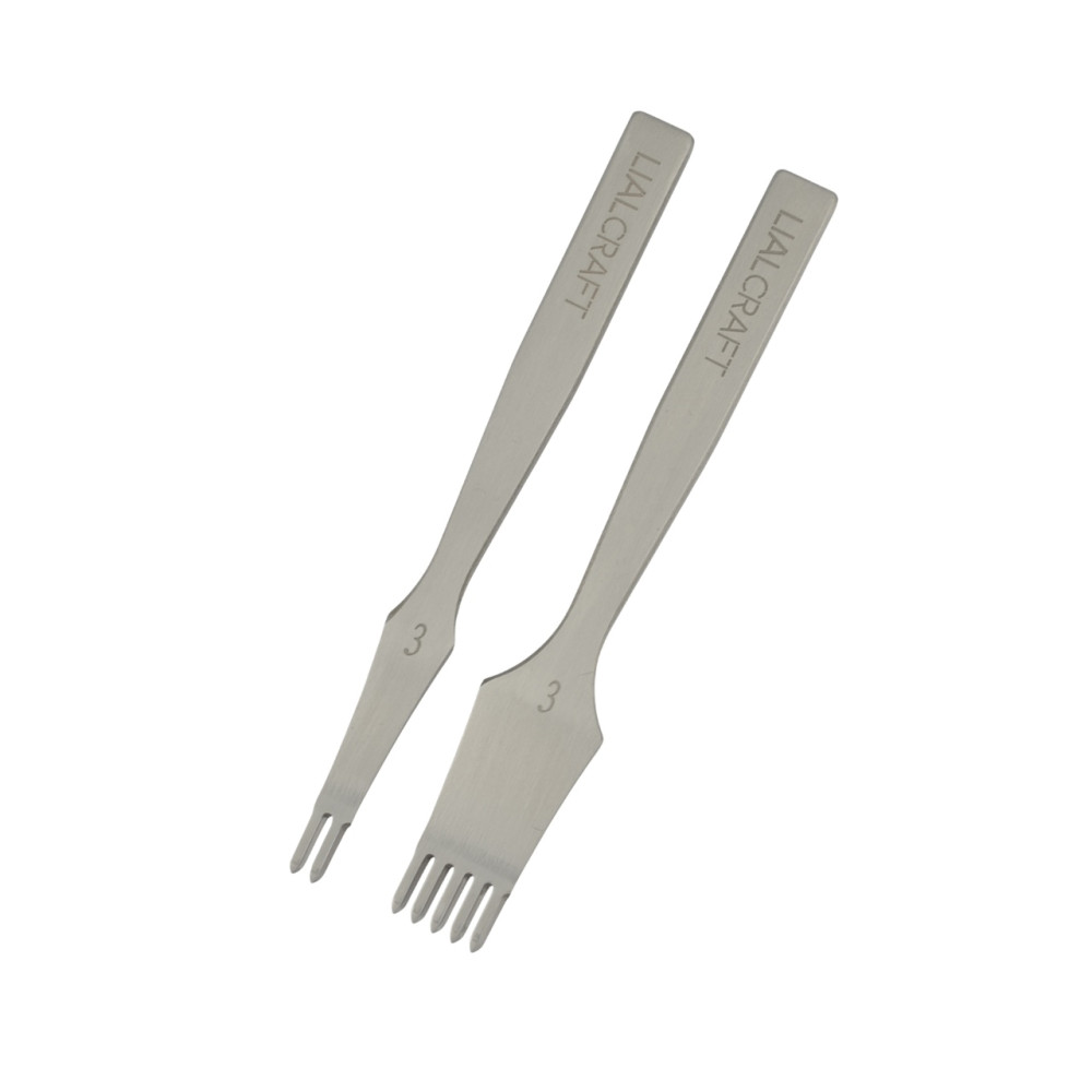 Набор строчных, ромбовидных пробойников LC из инструментальной стали с полированными зубьями. Используя данные пробойники вы сможете сшивать ваши изделия из кожи ровным и аккуратным швом. Отличие от версии LC 2+6 в том, что версия 2+5 имеет более толстые рукоятки.