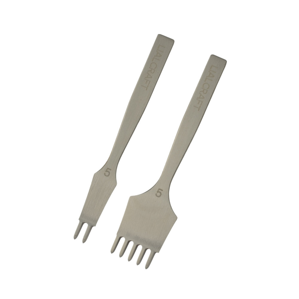 Набор строчных, ромбовидных пробойников LC из инструментальной стали с полированными зубьями. Используя данные пробойники вы сможете сшивать ваши изделия из кожи ровным и аккуратным швом. Отличие от версии LC 2+6 в том, что версия 2+5 имеет более толстые рукоятки.