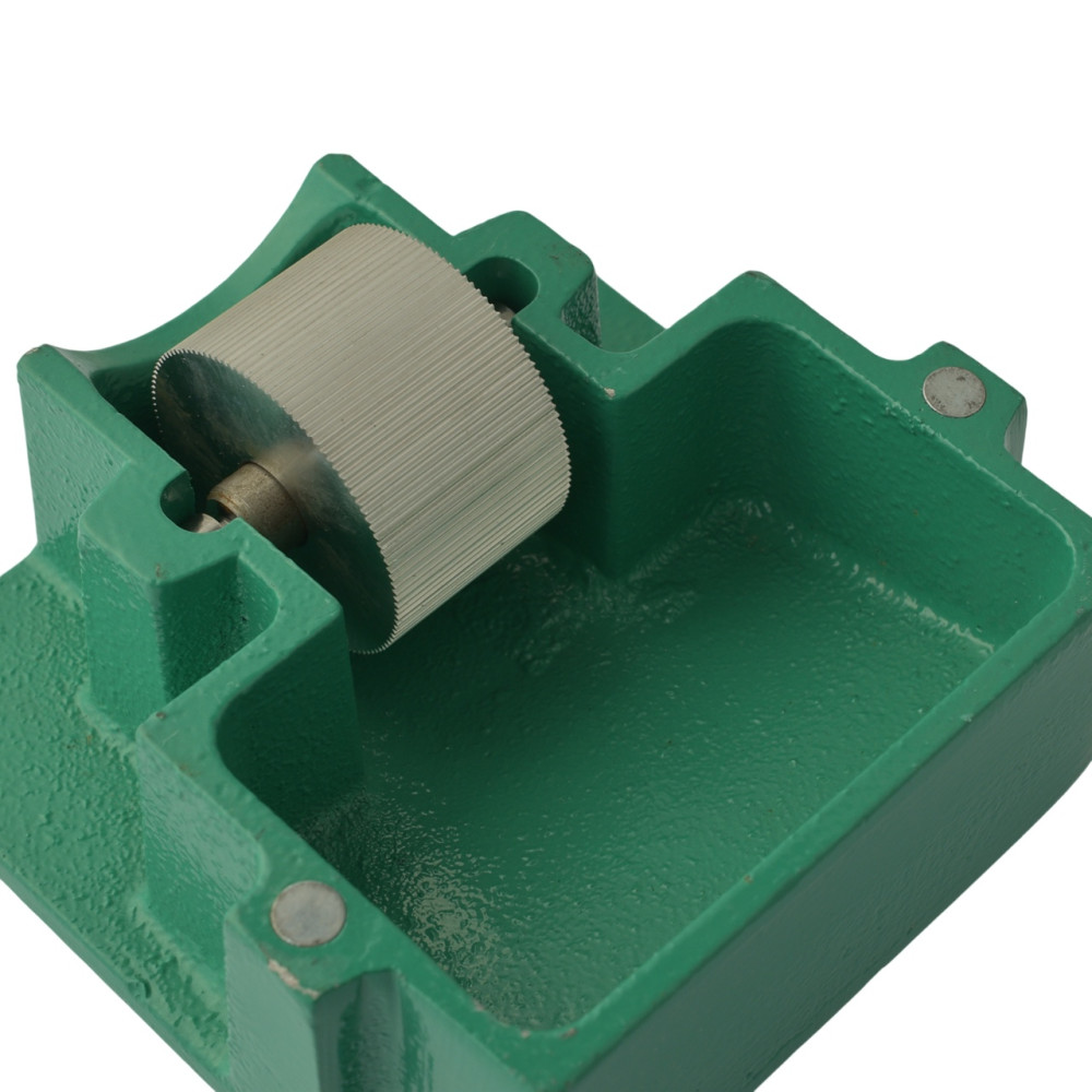 Ванна с роликом на подшипниках для нанесения краски на урез кожи в объёмах больше чем один-два. Нанесение краски для урезов с помощью такого ролика, позволит наносить ее более экономно, аккуратно и ровно - результат будет выглядеть профессионально. Ванна имеет пластину на магнитах, регулирующую зазор для поступающей краски.Ванна изготовлена из чугуна со снимаемым роликом, что позволяет без усилий убирать остатки краски после использования.