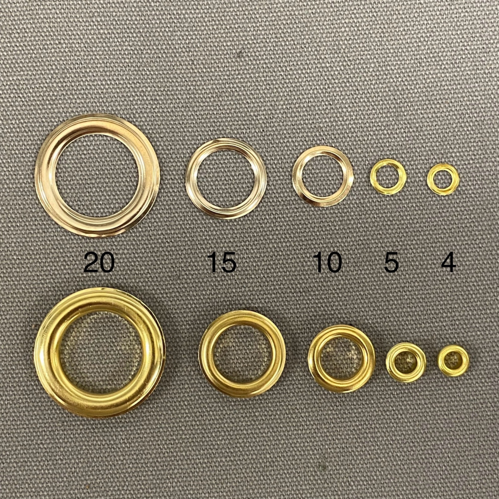 Люверсы Цена указана за шт. Комплектация: нижняя и верхняя часть. Материал: латунь Размеры на выбор: 4мм, 5мм, 10 мм, 15 мм, 20 мм.. Читать полностью