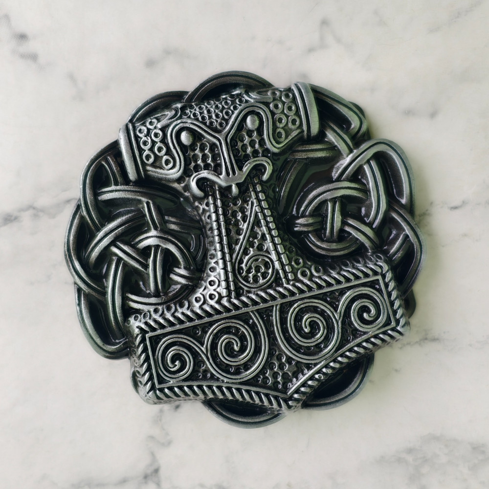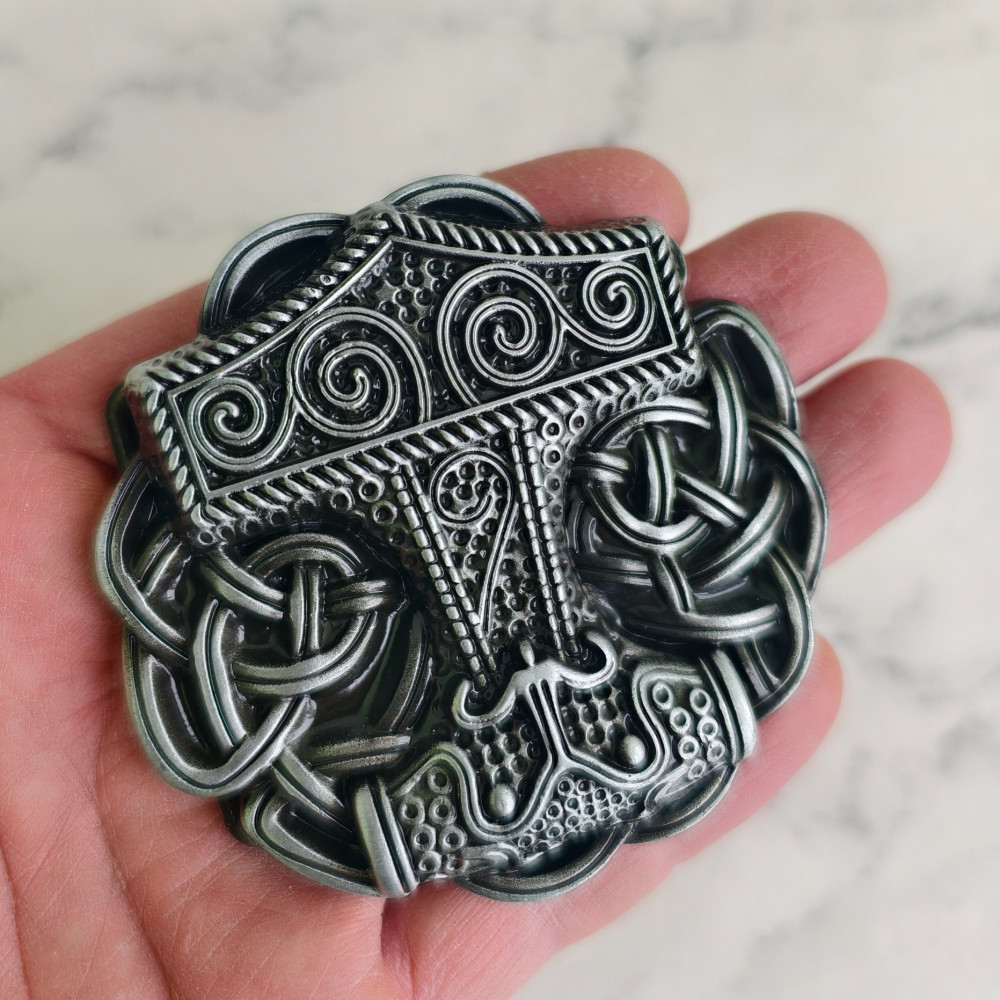 Пряжка с изображением Молота Тора. Округлой формы, достаточно широкая по толщине