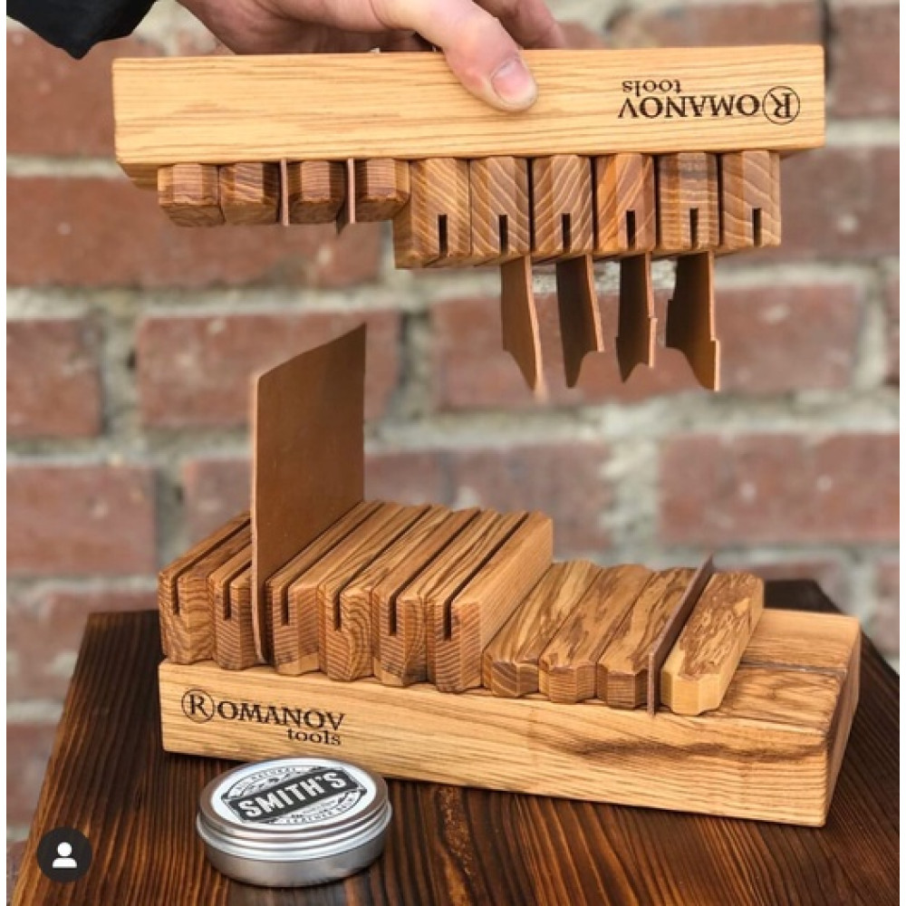 Органайзер выполнен из комлевого массива ясеня. В комплект входит десять автономных модулей с мощными магнитами, которые удержат детали сложносоставного изделия.