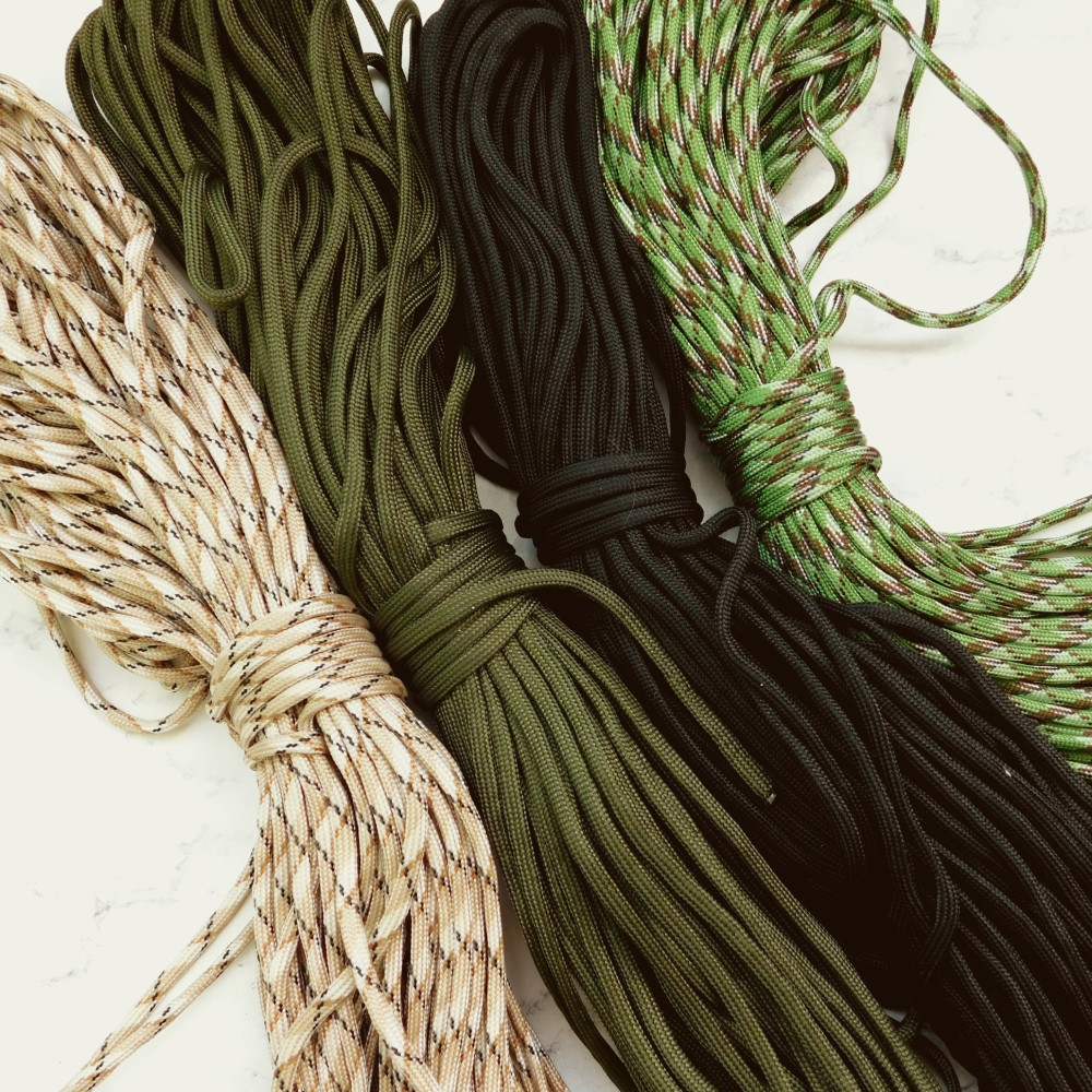 Предлагаем паракорд, шириной 4мм диаметром.