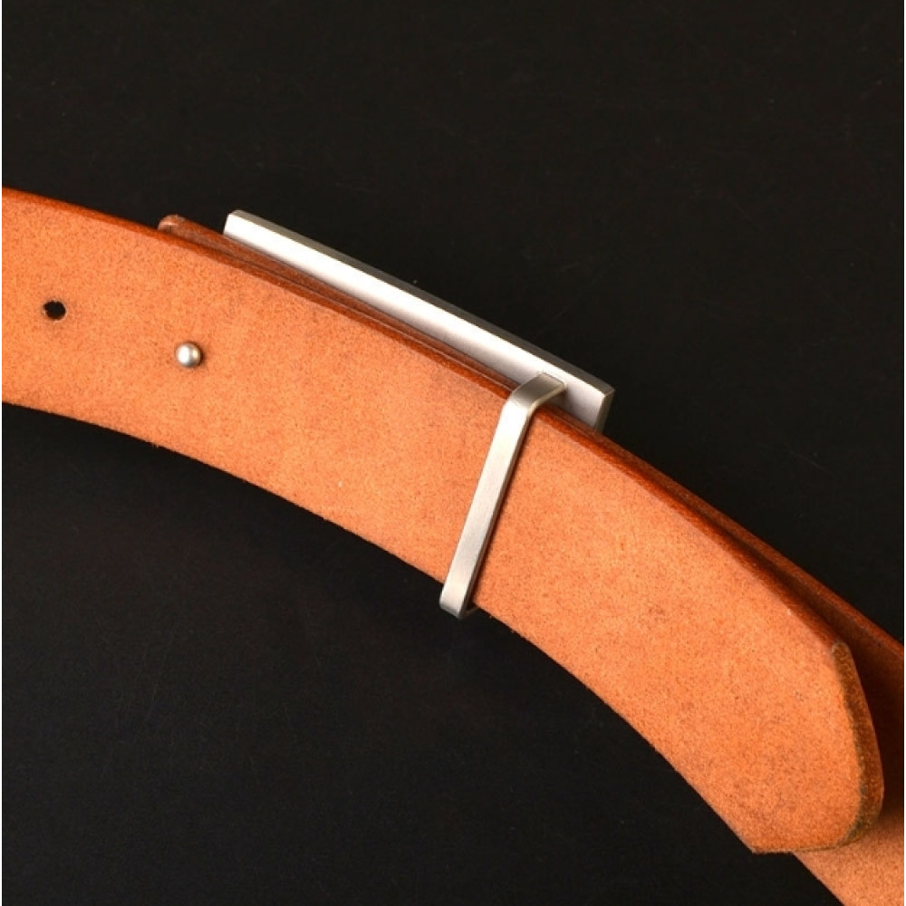 На ремне с данной пряжкой можно не делать кожаную шлевку, а застегивать ремень просто в 2 слоя.
