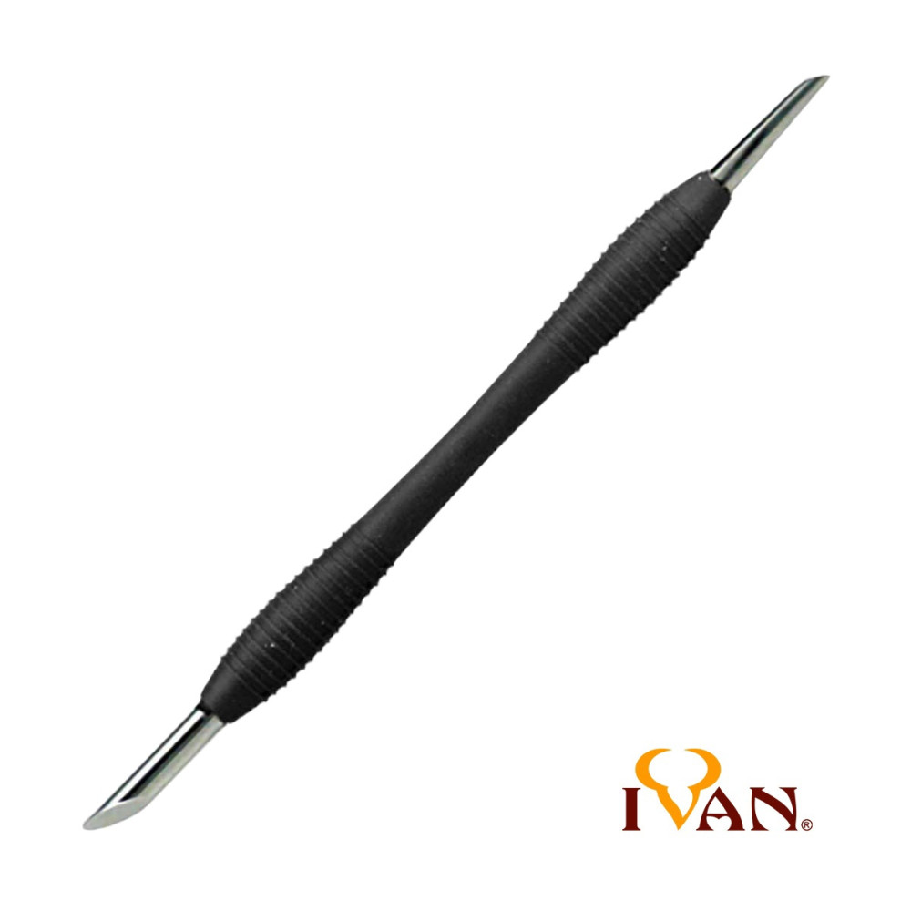 Двухсторонняя, профессиональная кардина от компании Ivan. Одна сторона выполнена в форме маленького подрезного бевелера, другая в форме большого бевелера. Эргономичная и прорезиненная рукоятка, позволяют более точно контролировать движения и нажим при работе.Используется при 3D моделировании из кожи, а также сглаживания вашего рисунка после работы со штампами. После сглаживания вашей работы, она выглядит более гладкой и выразительной, что дает законченный вид.