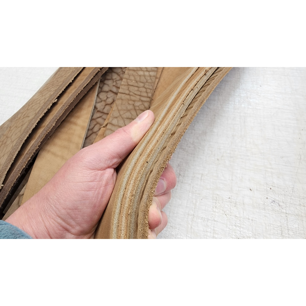 Комбинированное дубление Кожа толстая, достаточно пластичная, не смотря на толщину сгибается Обратка далека от идеала. Кожа разной степени фактурности, от слабой до сильно выраженной. Есть шрамы при.. Читать полностью