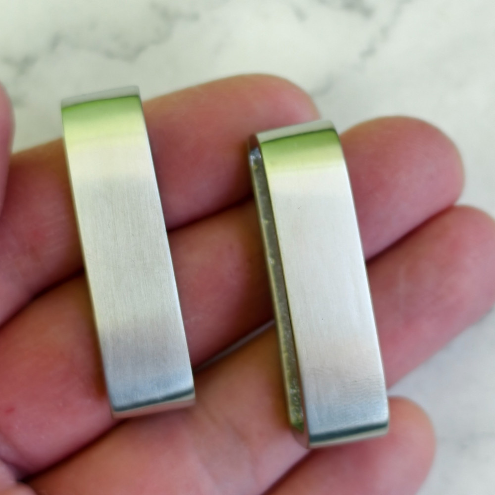Тренчик (шлёвка) из мельхиора для ремня до 39мм (!) Цвет - более теплее, чем у нержавеющей стали. Идеально подойдет для пряжек выполненных из мельхиора. Матовая поверхность. Размеры: внешние - 44*18м.. Читать полностью