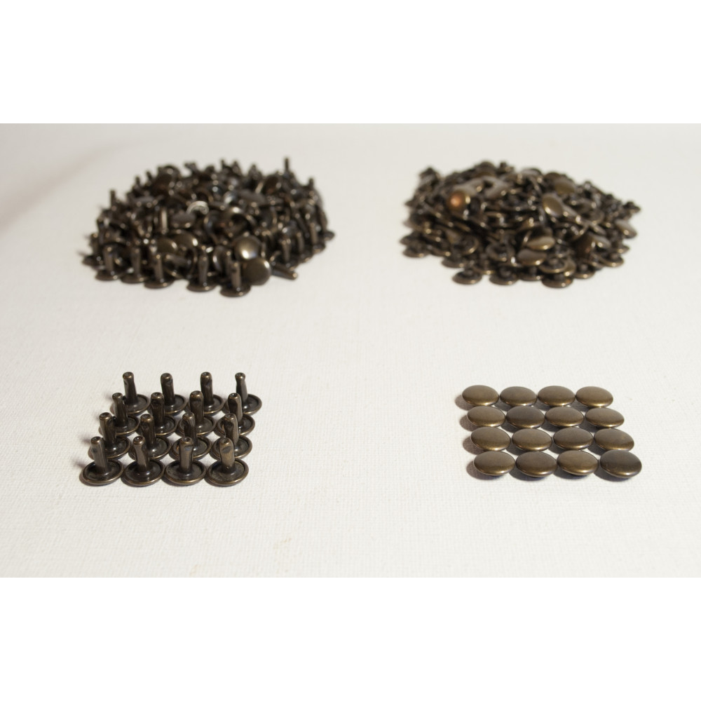Хольнитены (заклепки) двухсторонние. Антик. 9 мм Хольнитены - фурнитура предназначенная для соединения нескольких слоев кожи, ткани и других материалов. Также используется для украшения изделий из ко.. Читать полностью