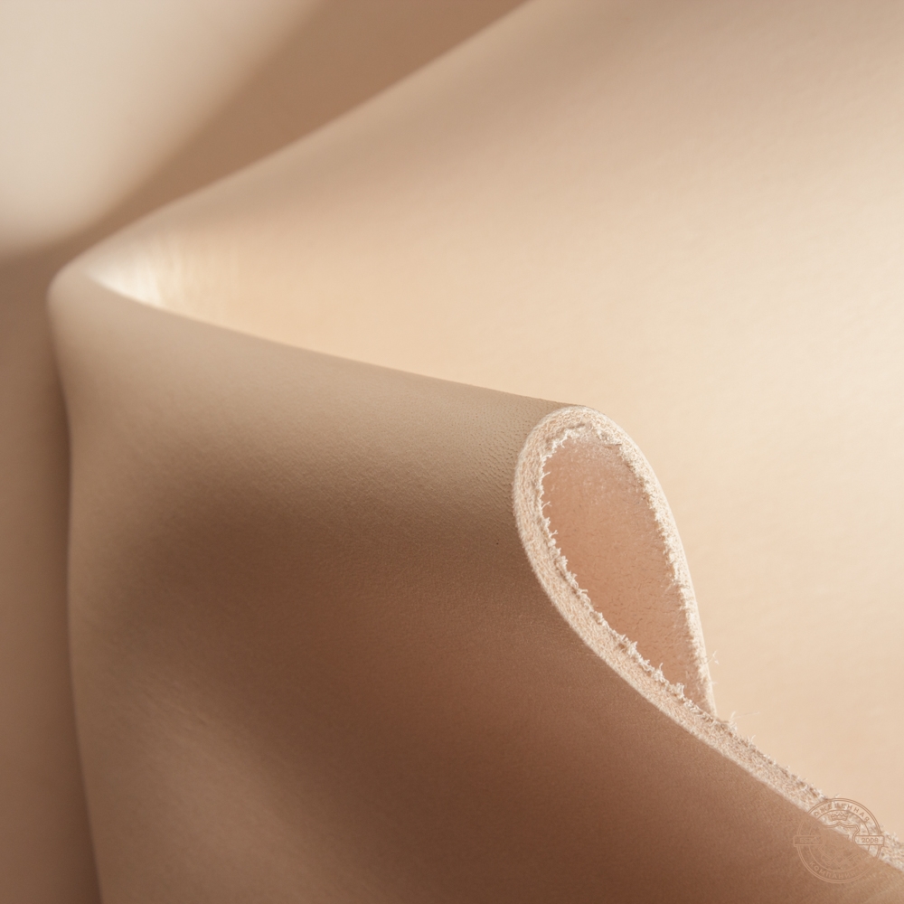 Полукожа растительного дубления с естественным лицом, без отделки и с легкой мереей.