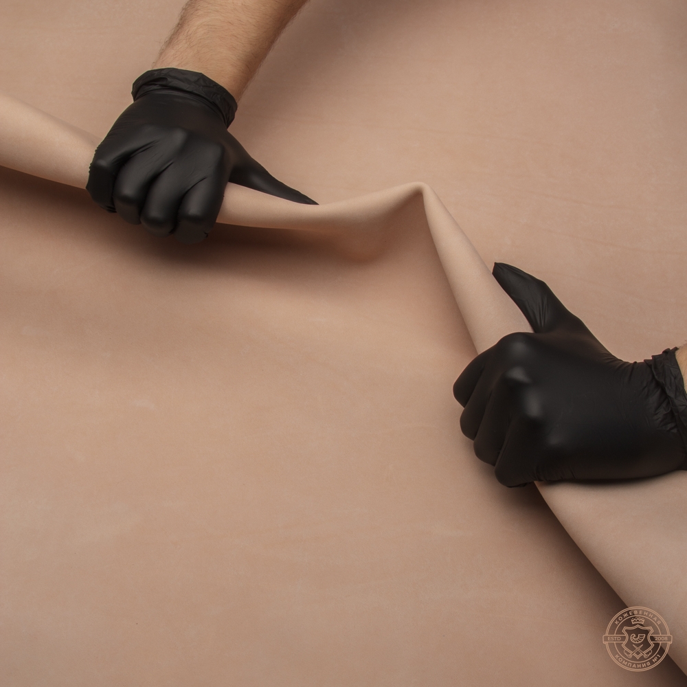 Кожа очень эффектная. Восприимчива к тиснению как холодному, так и горячему, легко поддается формовке. Принимает воски, крема, пропитки и другие средства защиты. Хорошо впитывает воду. Отличный оттиск от штампов. Идеальная гладкая обратная сторона.