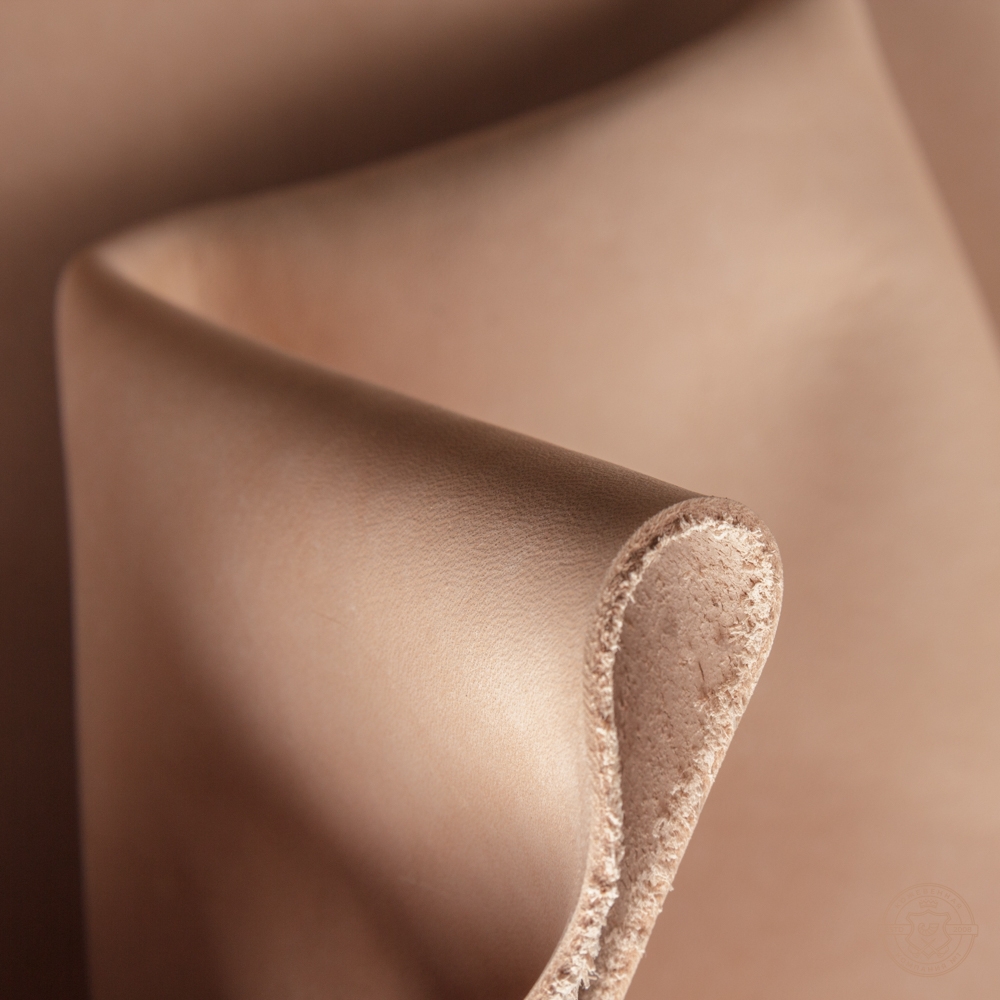 Полукожа растительного дубления с естественным лицом, без отделки и с легкой мереей.
