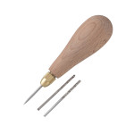 Шило Wild Bull tools 3 в 1 с цанговым зажимом, позволит вам иметь три разных вида шильев в одной рукоятке, достаточно сменить жало под нужный вид работ. Круглое для разметки и прокалывания круглых отверстий, олива для работы с линзовидными пробойниками, плоское для работы с французскими пробойниками. Изготовлено из инструментальной стали и имеет рукоятку из бука. Жала отлично заполированы для более легкого прокалывания отверстий.