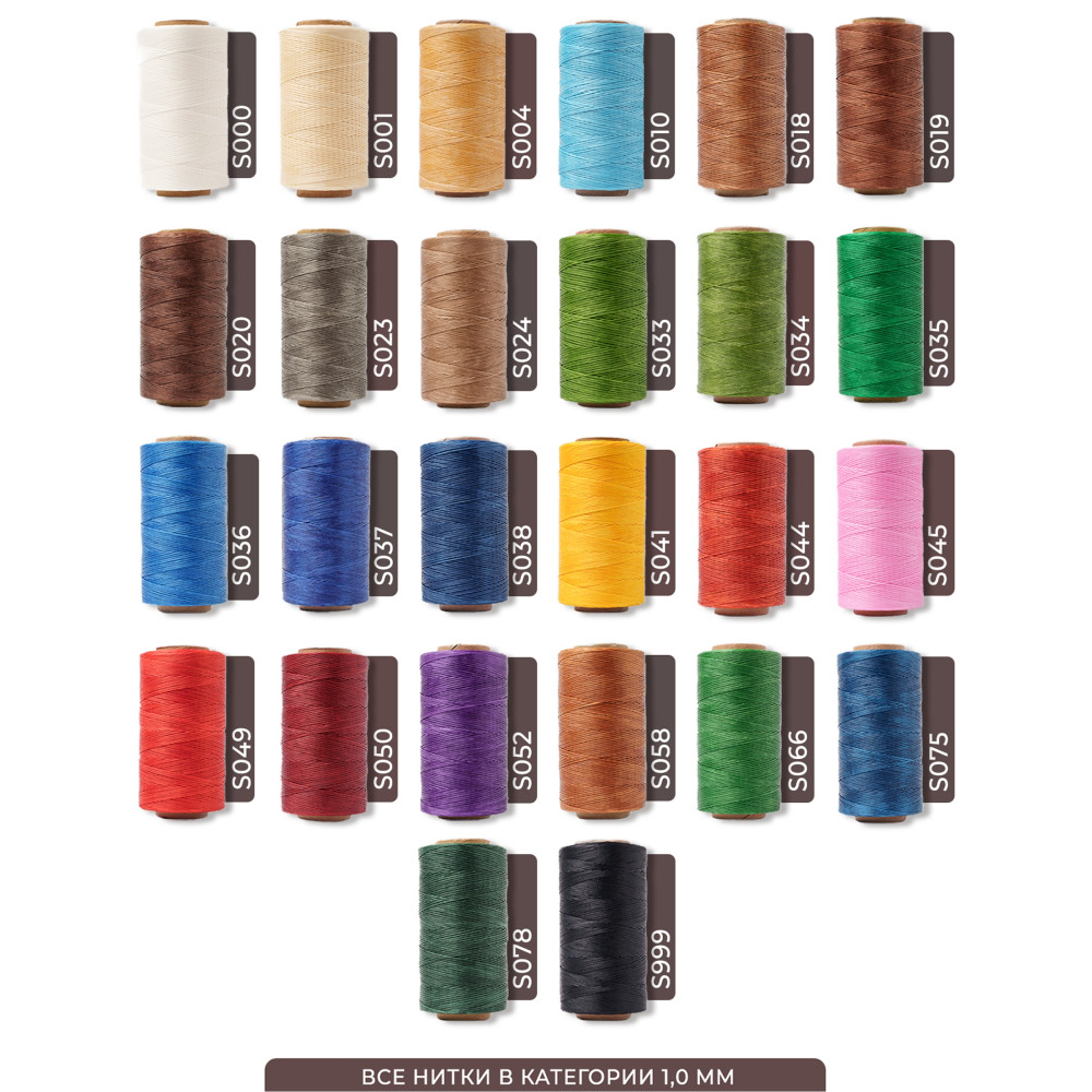 ⬛ Нити не выцветают и окрашены промышленным способом. При правильном шитье седельным швом, стежки ложатся в отверстия ровно и одинаково. Одна из самых недорогих на рынке полиэстеровых нитей для ручного шитья по коже, но обладает при этом отличным для своей цены качеством.